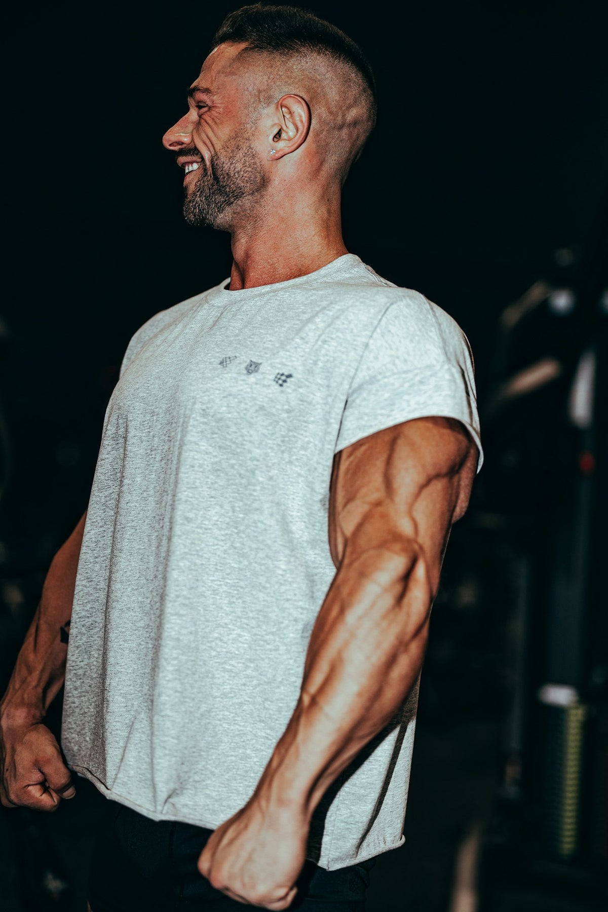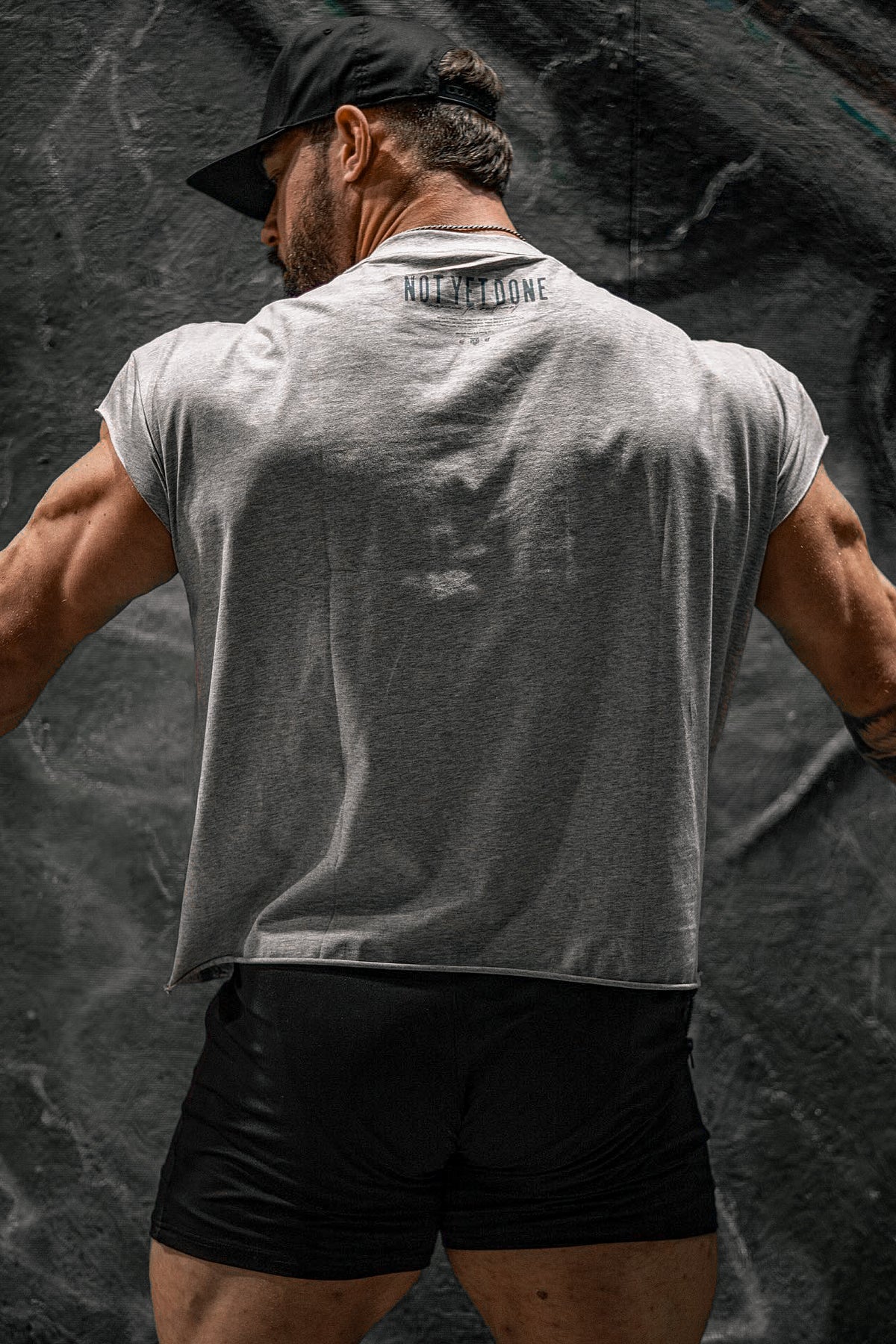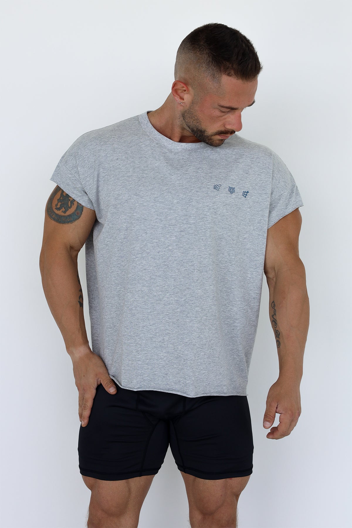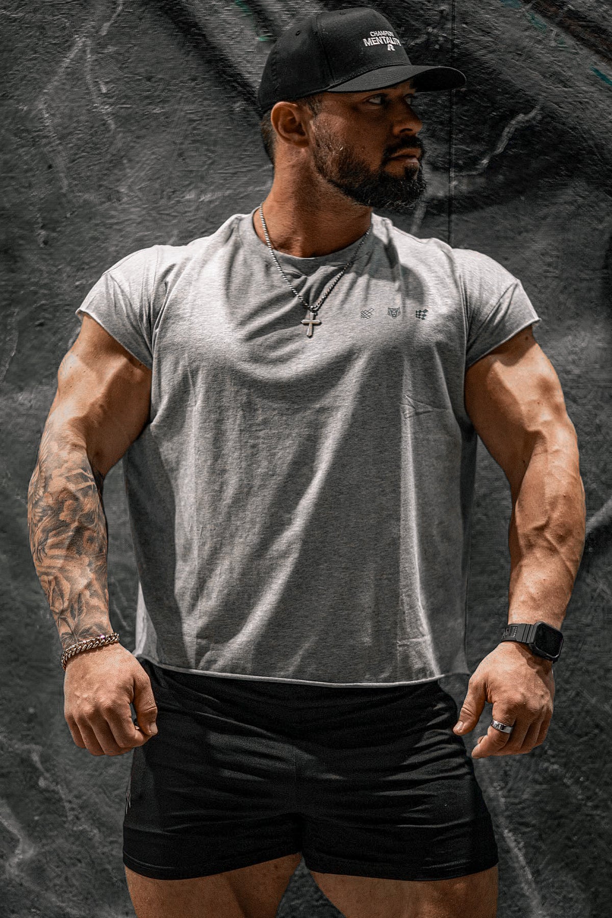 Oversized Raw-Cut Cropped Tee - Heather Gray