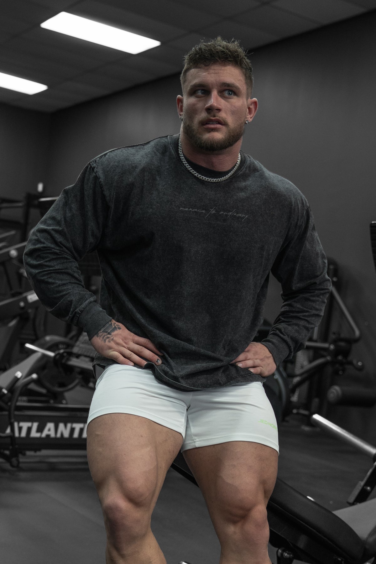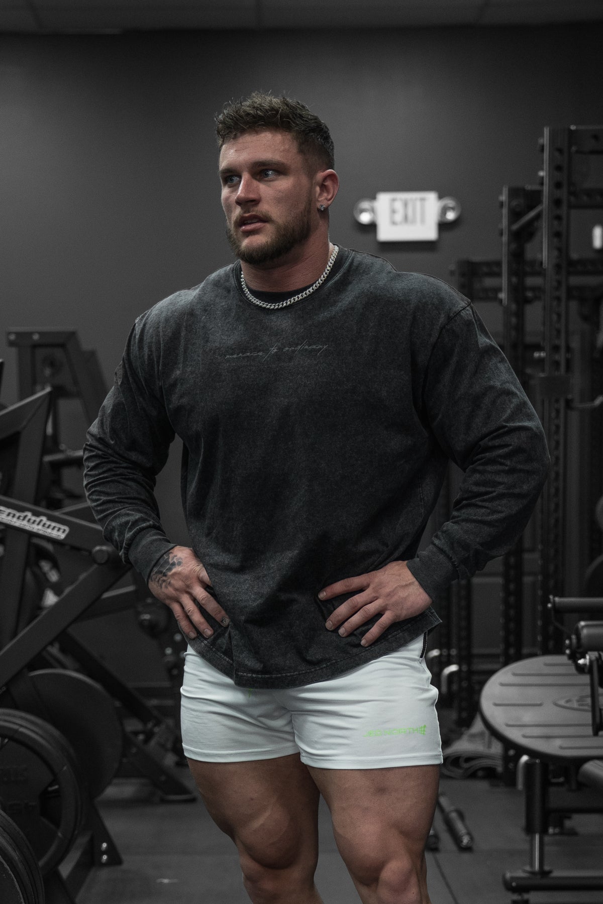 • Subtle "Menace to Ordinary" text across chest