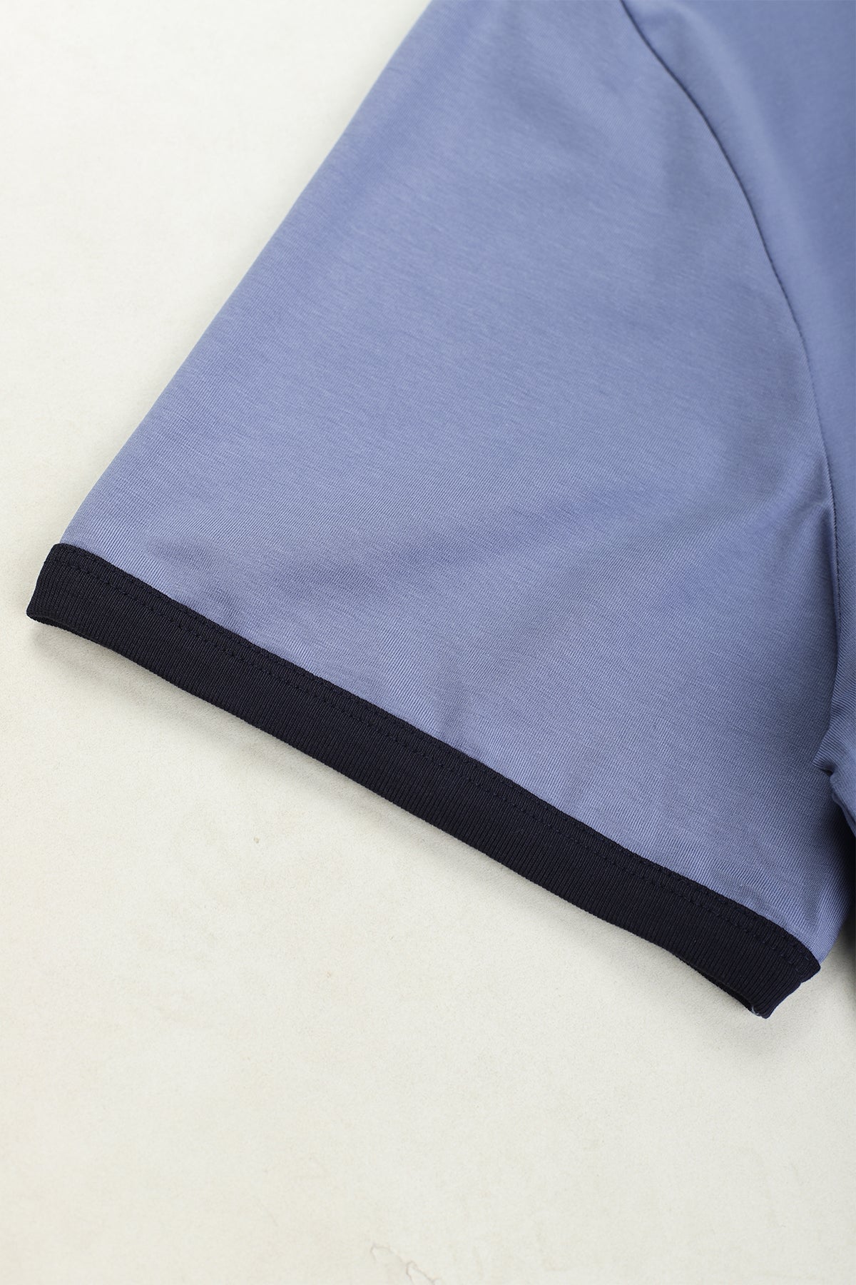 • Black band accent around collar and sleeves