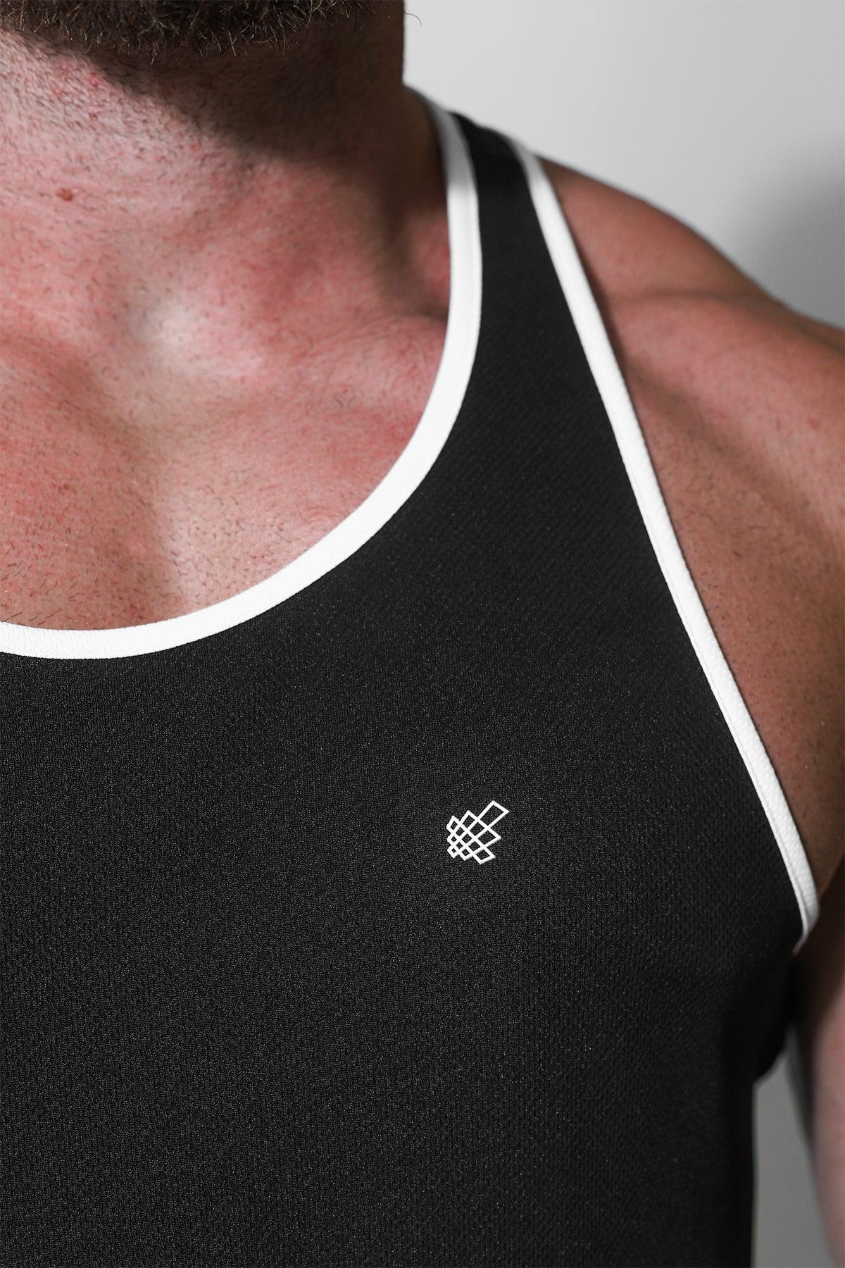 Fast-Dry Bodybuilding Workout Stringer - Black with White