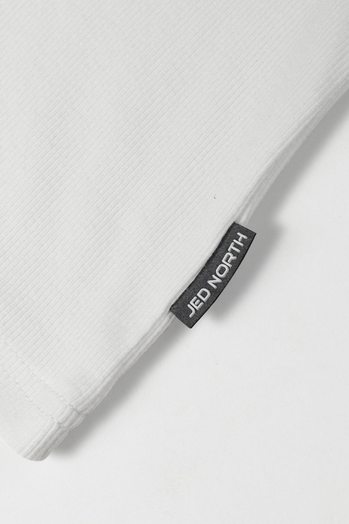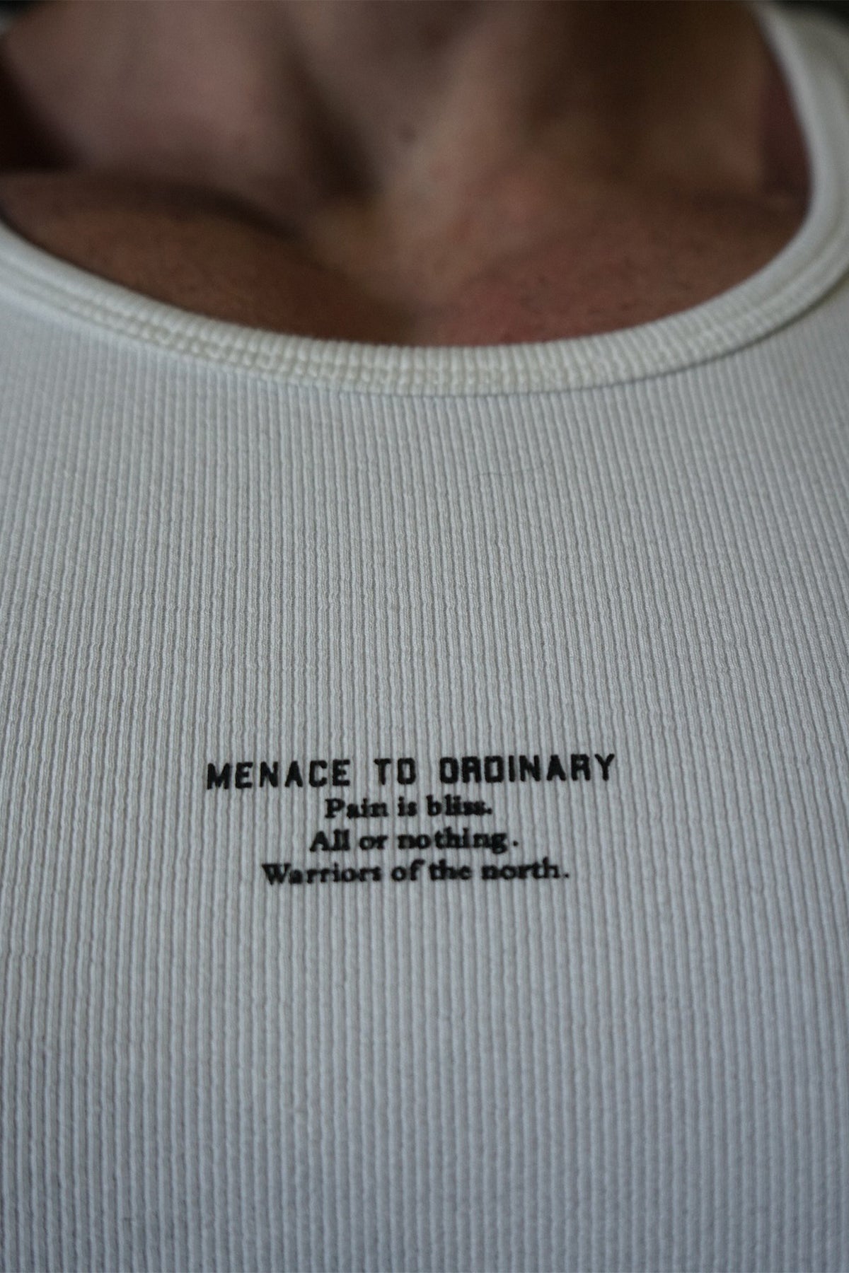 • Screen-printed fine text across the chest, giving it a utilitarian/industrial vibe