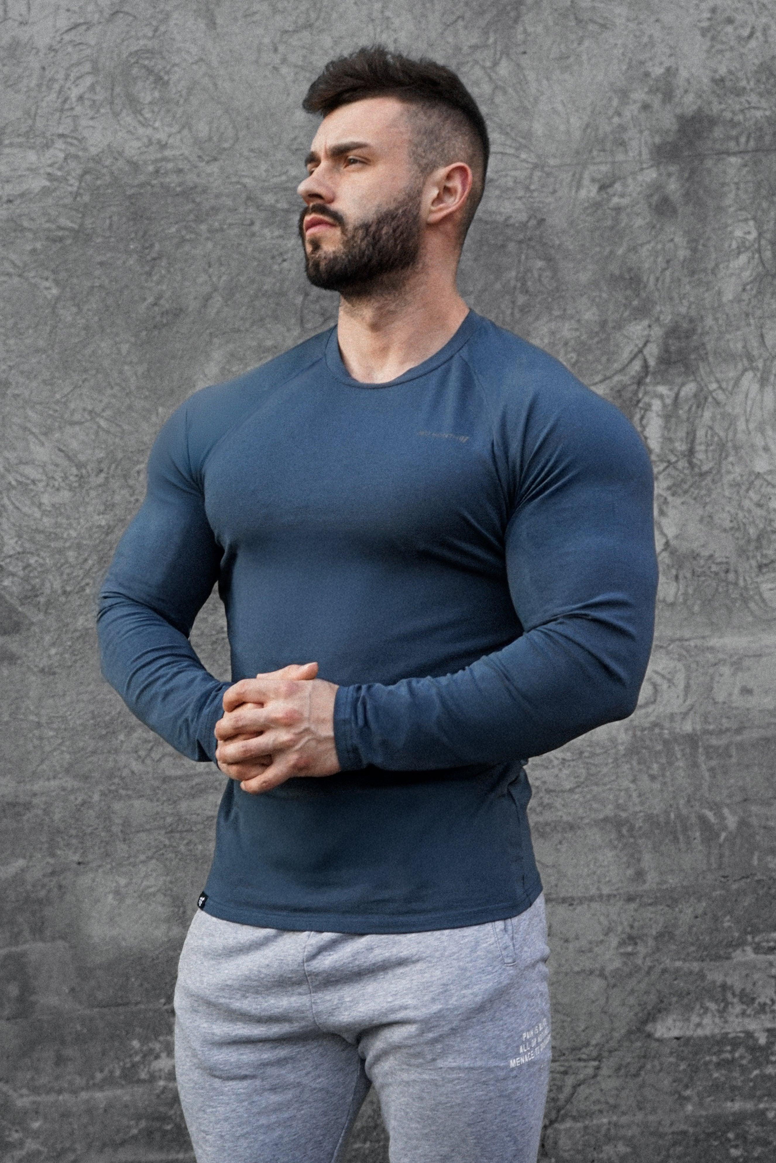 Titan Muscle-Fit Long Sleeve T-Shirt - Steel Blue XL / Blue