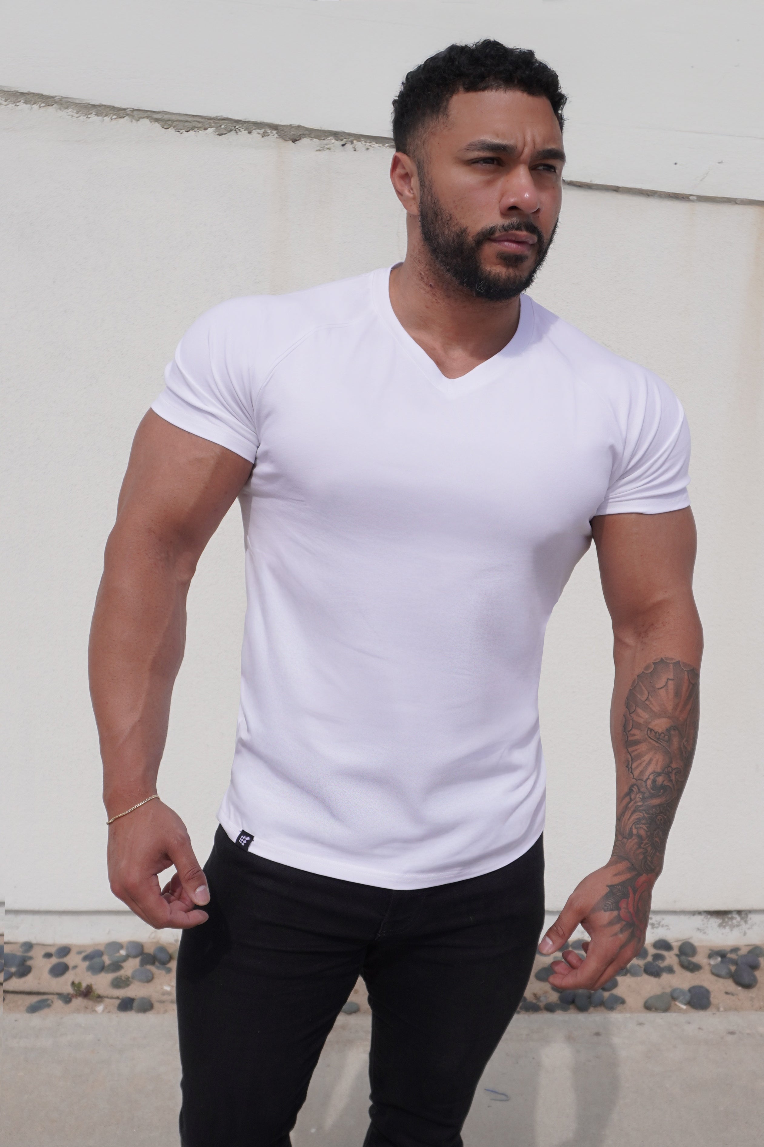 V Neck Muscle-Fit T-Shirt - White